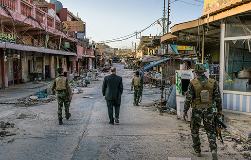 Župan Jalawle je na obhodu po razdejanem mestu v bližini iranske meje, kjer so se pripadniki pešmerge na vso moč borili proti Isisu. Čeprav so militantneže potisnili iz mesta, se prebivalci ne morejo vrniti, dokler ne bodo odstranili skritih min.