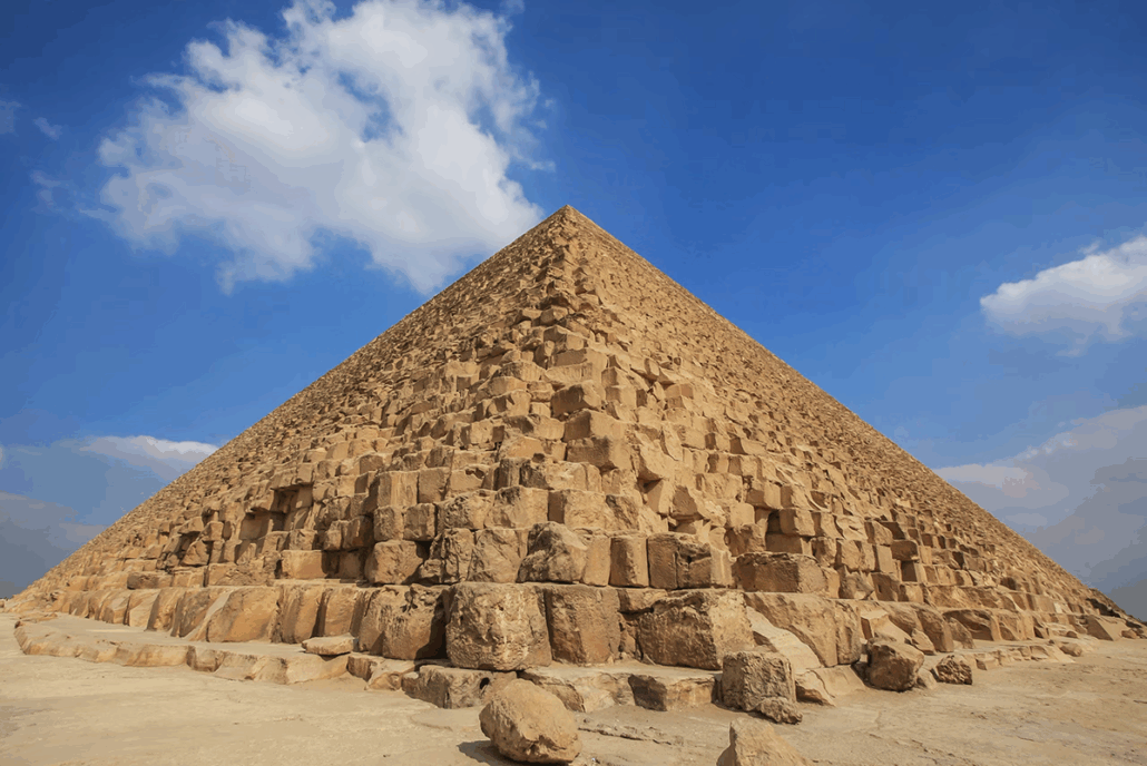 Piramide so bile morda nekakšen pomorsko-industrijski projekt in območje, ki ga danes poznamo kot vetrovno peščeno planoto v Gizi, je nekoč verjetno mejilo na živahno pristanišče. Kar nekaj domišljije potrebujemo, da si to lahko predstavljamo. Velikanski trikotniki sredi puščave – ki danes begajo odrasle in navdušujejo otroke – so spodbudili nastanek že toliko norih zamisli, da te že nekaj časa veljajo za provokacije. Del, tudi trdovratno prepričanje, da so stvaritev Nezemljanov, jih je bilo povezanih z vprašanjem, kje so našli tolikšno količino materiala in kako so ga pripeljali na gradbišče. Po odkritju izginulega rokava Nila se je mnenje glede tega nekoliko spremenilo, še vedno pa ostaja neznanka, kako so piramide gradili. Vemo le, da so neverjetno natančno poravnane z glavnimi stranmi neba in da njihovi temelji tvorijo skoraj popoln kvadrat, kar je dokaz natančnosti in matematičnega znanja, ki je moralo biti na enako visoki ravni kot očitna mišična moč graditeljev.