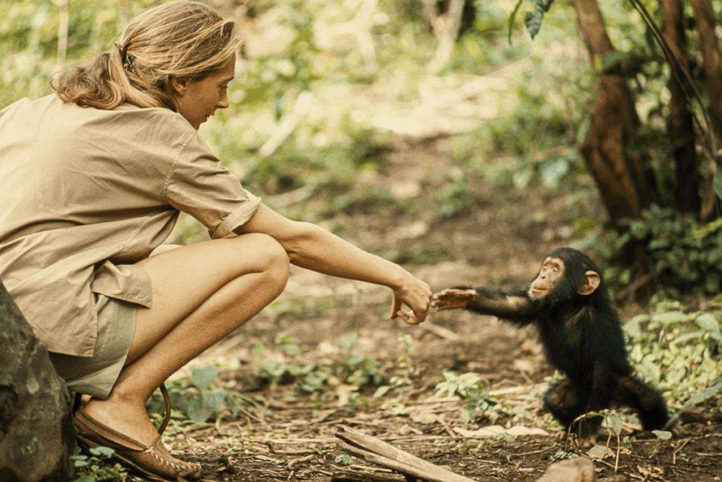 K temu so prispevale tudi fotografije lepe mlade Angležinje, ki se je v afriškem gozdu spoprijateljila s človeku podobnimi opicami. Čeprav ni imela diplome, je lahko leta 1966 na Univerzi v Cambridgeu doktorirala iz etologije. Leta 1971 je njena knjiga V človekovi senci (In the Shadow of Man) o letih, ki jih je preživela v Gombeju, postala svetovna uspešnica. Ta po vsem svetu znana ženska je bila najplemenitejša med vsemi – druge je navdihovala, da sanjajo drzne sanje, da jim je iskreno mar za stvari, ki resnično štejejo, in da gledajo na naravni svet skozi prizmo medsebojnega sobivanja. Kljub avri, ki jo je obdajala, je bila preprosta. Človeška.